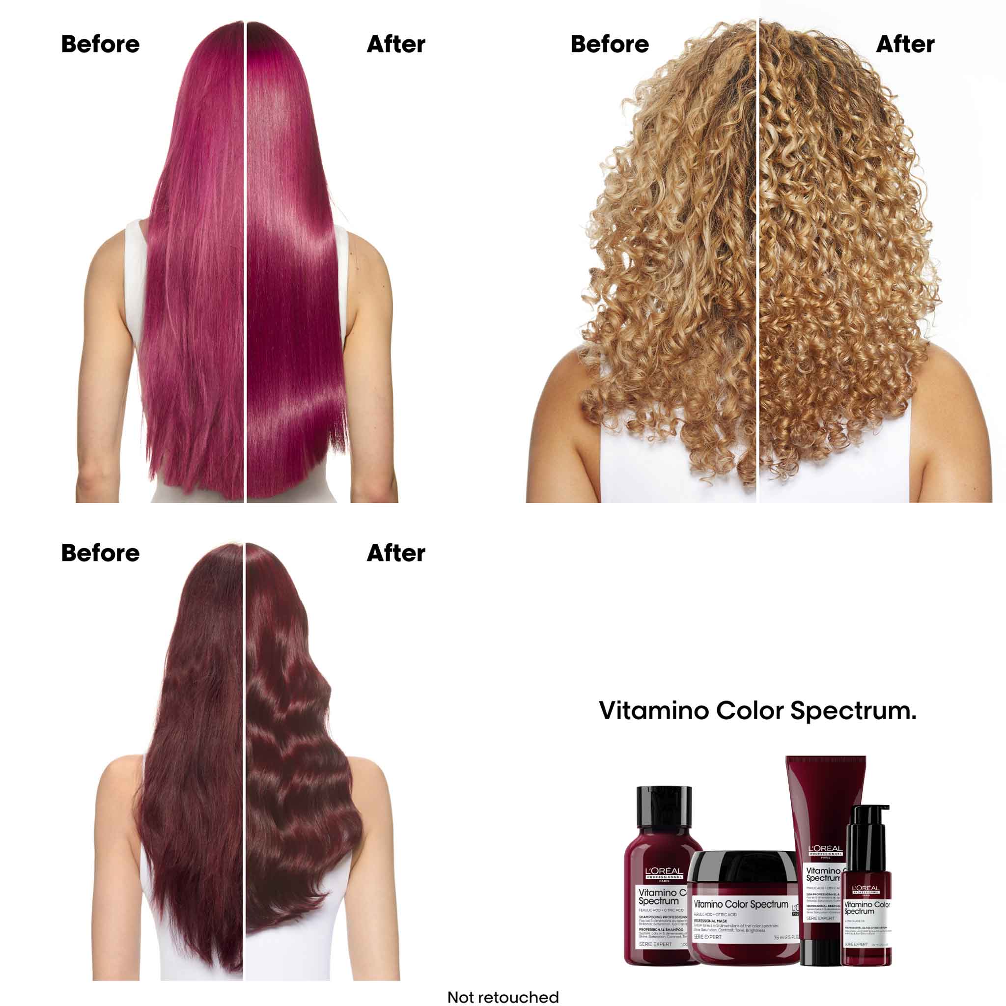 The L'Oréal Professionnel Vitamino Color Spectrum Glass Shine Serum is a leave-in treatment for colour-treated hair that locks in shine and provides ultimate colour protection. Its advanced formula coats the cuticle surface, delivering a glass-like finish and protecting colour vibrancy for up to 10 washes*.