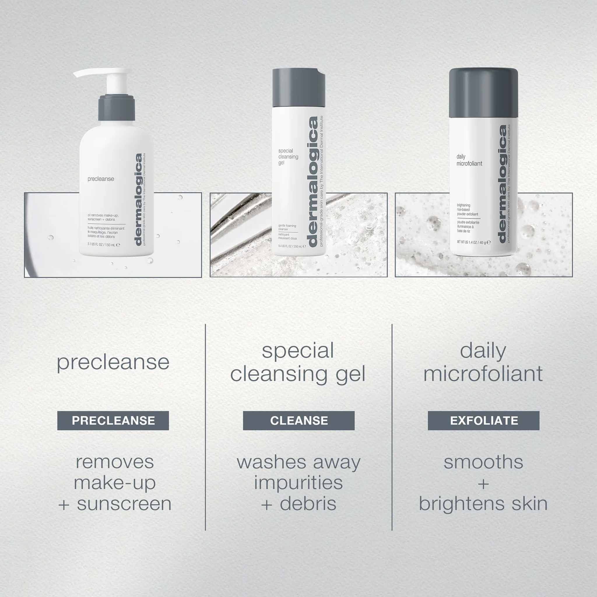 Bring home our signature kit this winter — and light up the night with your unmistakable glow. This do-it-all cleansing kit features three iconic formulas for brighter, smoother, healthier-looking skin. Remove make-up and debris with Precleanse, wash away impurities with Special Cleansing Gel, and unveil your glow with our #1 powder exfoliant, Daily Microfoliant.*