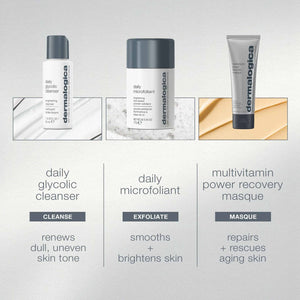 Light up every room you enter this holiday season. This three-piece kit brightens and polishes away dullness with renewing Daily Glycolic Cleanser and our #1 powder exfoliant, Daily Microfoliant.* Use the two formulas daily to brighten and smooth. Once weekly, use the included fan brush to apply Multivitamin Power Recovery Masque, an ultra-replenishing masque formulated to rescue stressed skin and boost skin resilience.