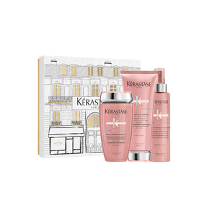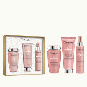 This Holiday season, unwrap the magic of a Parisian winter and dive yourself into the luxurious world of Kérastase with our limited edition Holidays sets. Receive a complimentary Bain Chroma Respect with a Fondant Cica Chroma and a Sérum Chroma Thermique.