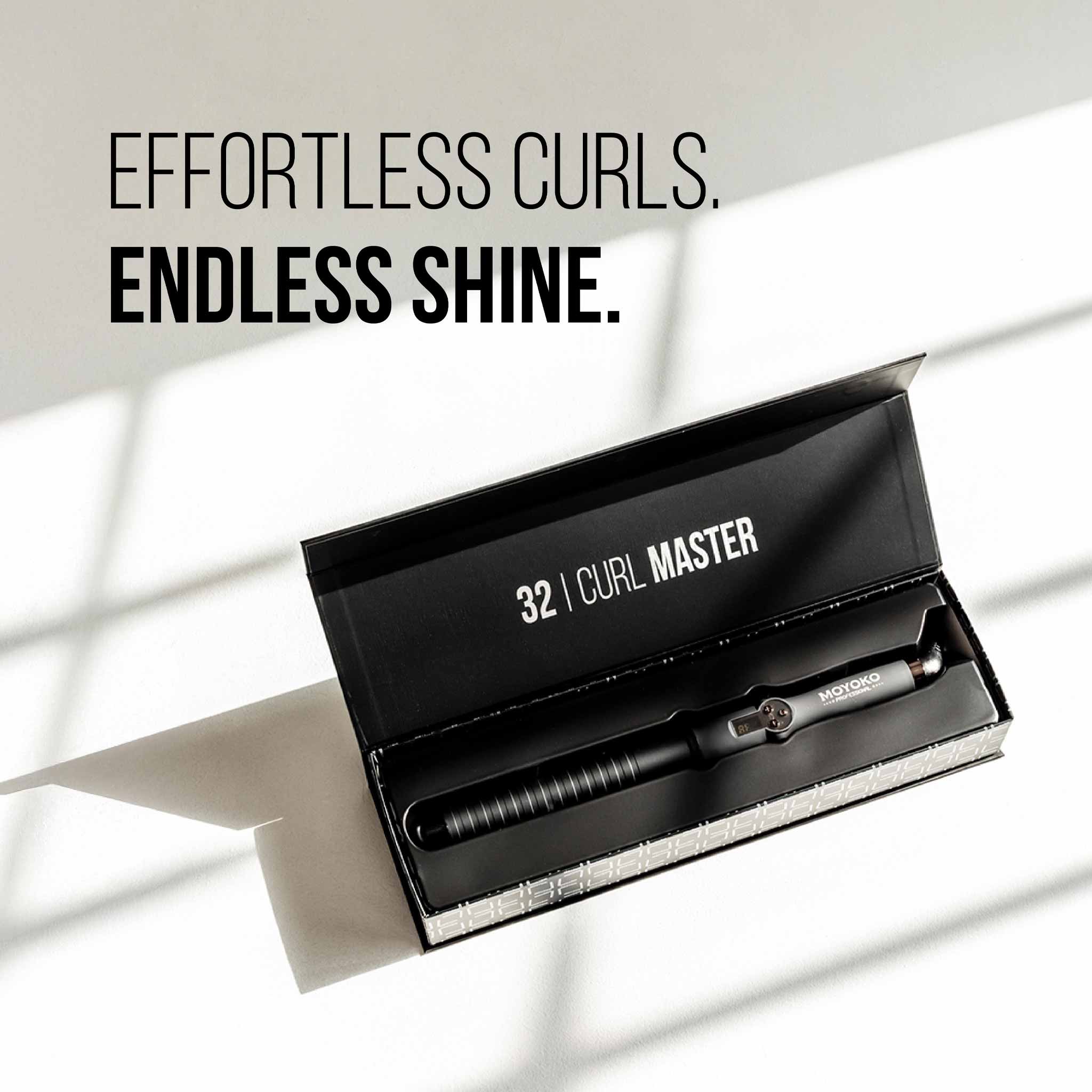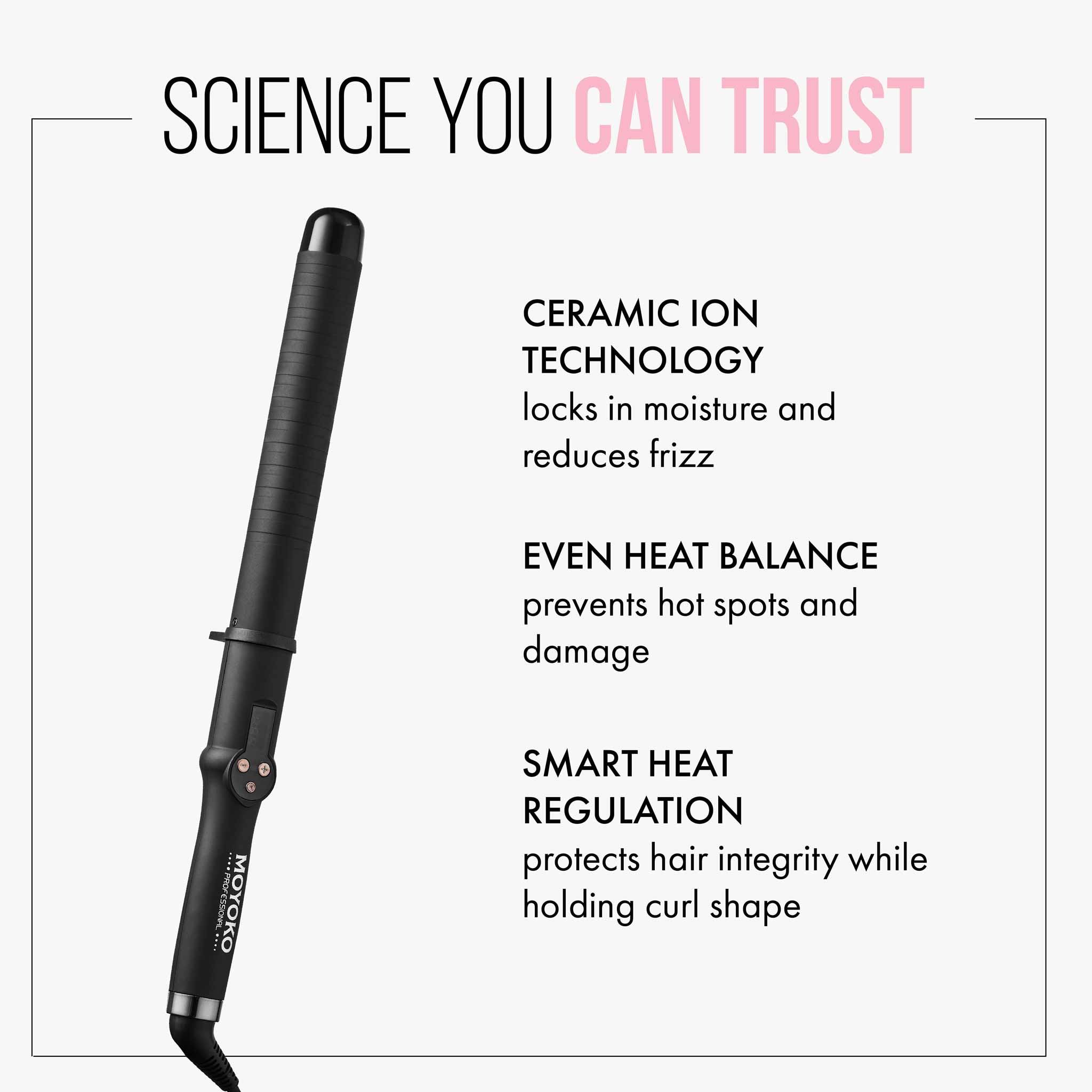Whether it is bouncy curls or glamorous waves, the Moyoko Curl Master has got you! This 32mm ceramic coated barrel has extended length, creating uniform curls in even the longest strands.