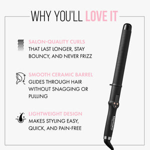 Unlock long-lasting, voluminous curls with the non-slip barrel topped off with a cool tip that provides a safe place to hold while you style your hair.