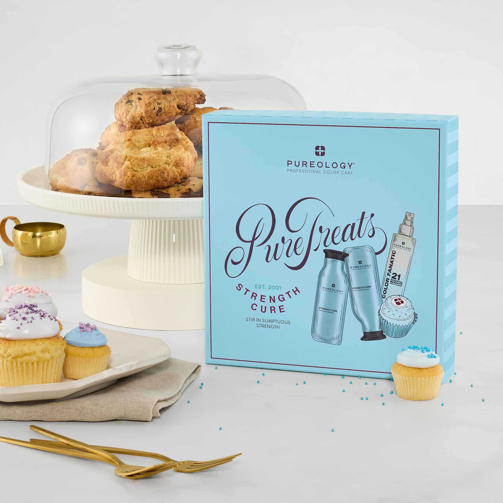 A recipe for repair: Stir in sumptuous strength. Strength Cure limited edition gift set that includes a Pureology Strength Cure Conditioner, A Pureology Color Fanatic Treatment Spray and a complimentary Pureology Strength Cure Shampoo. Channel all the strength of an ancient redwood with our Strength Cure system that fortifies and repairs breakage. You’ll see improved strength while also preventing further damage.