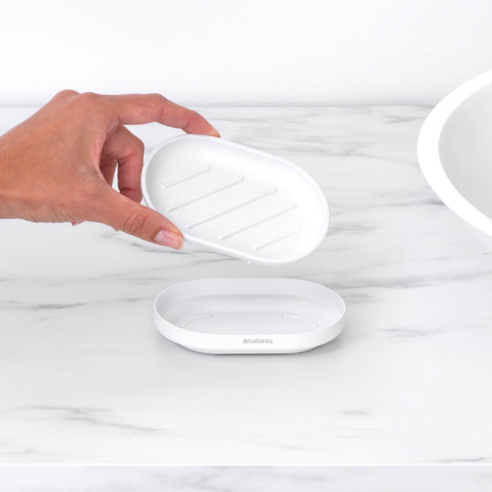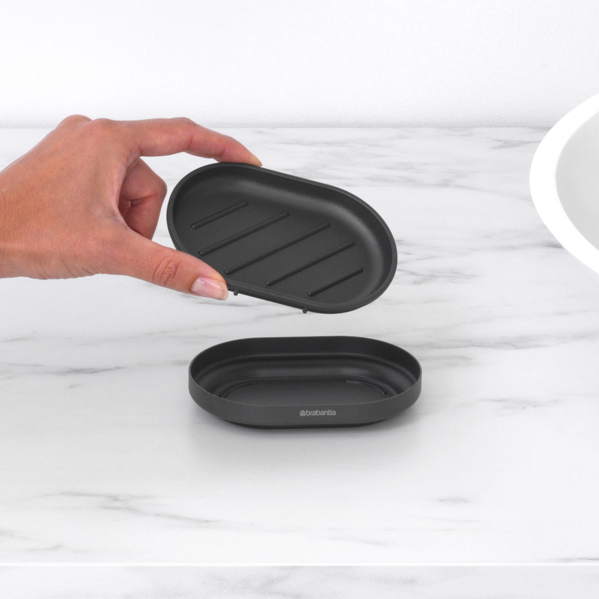 Prevent a soap opera when washing your hands and grab this next-level Brabantia MindSet Soap Dish in textured metal. Ribbed to keep your soap dry, and big enough to hold a full-size soap bar. And don't let the slick design fool you, its non-slip feet will keep it firmly in place.