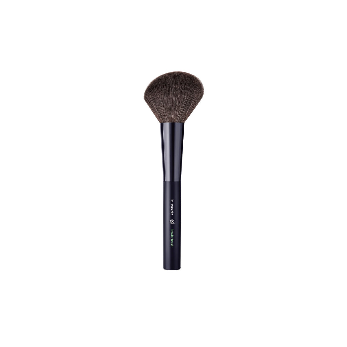 The large, slanted brush head made from soft synthetic hairs distributes powder evenly across the skin to create a natural-looking complexion with reduced shine.