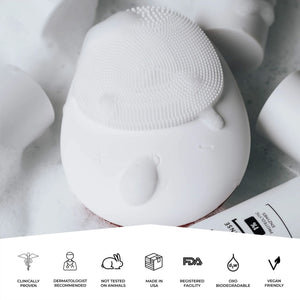 Ultra-Hygienic Soft Silicone rubber exterior provides the softest and most gentle face cleansing and massage for all skin types normal. It vibrates at a frequency range of 6500 times per minute to remove dead cells and stimulate collagen and elastin production.