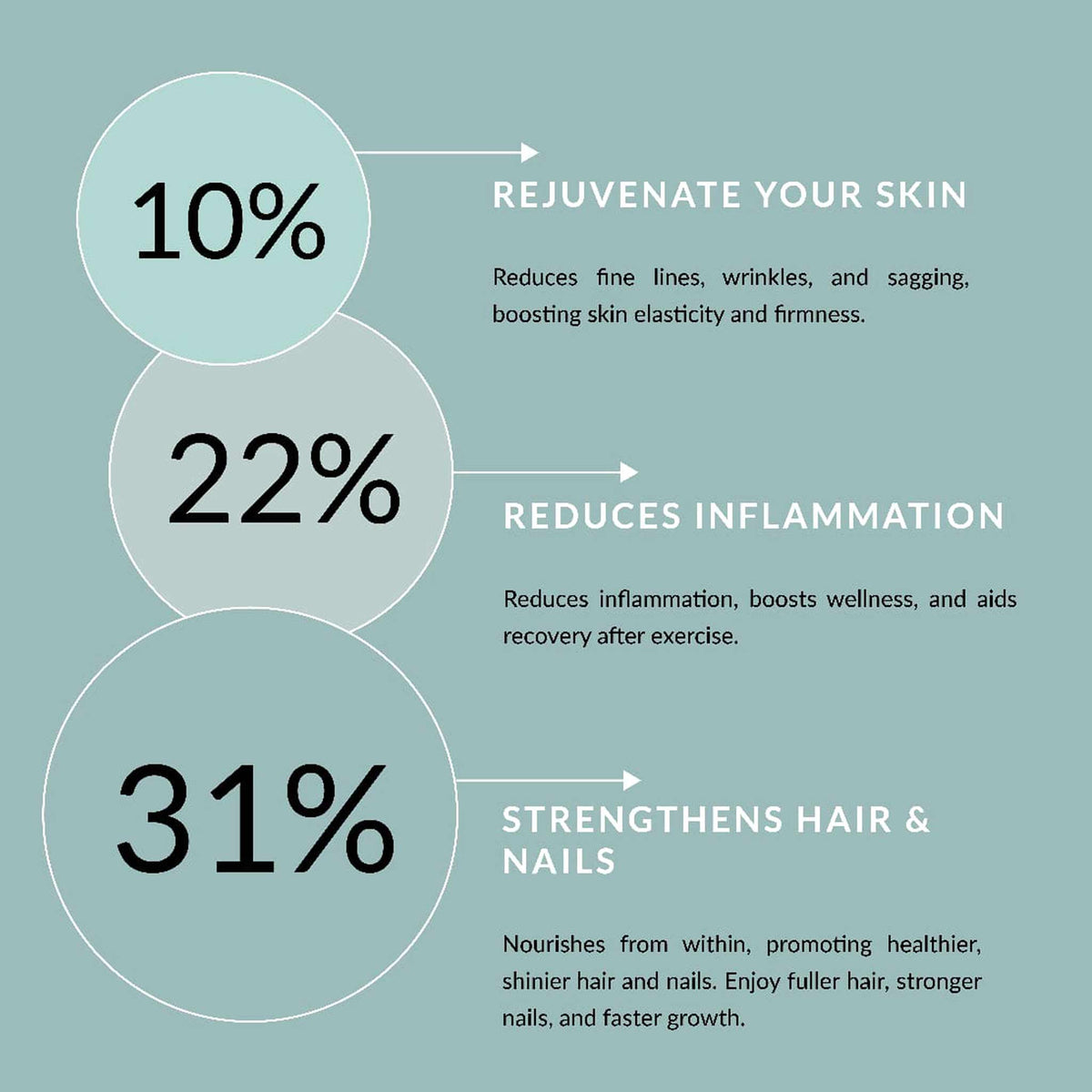 • Improves skin elasticity, hair strength, joint mobility, and overall vitality.
