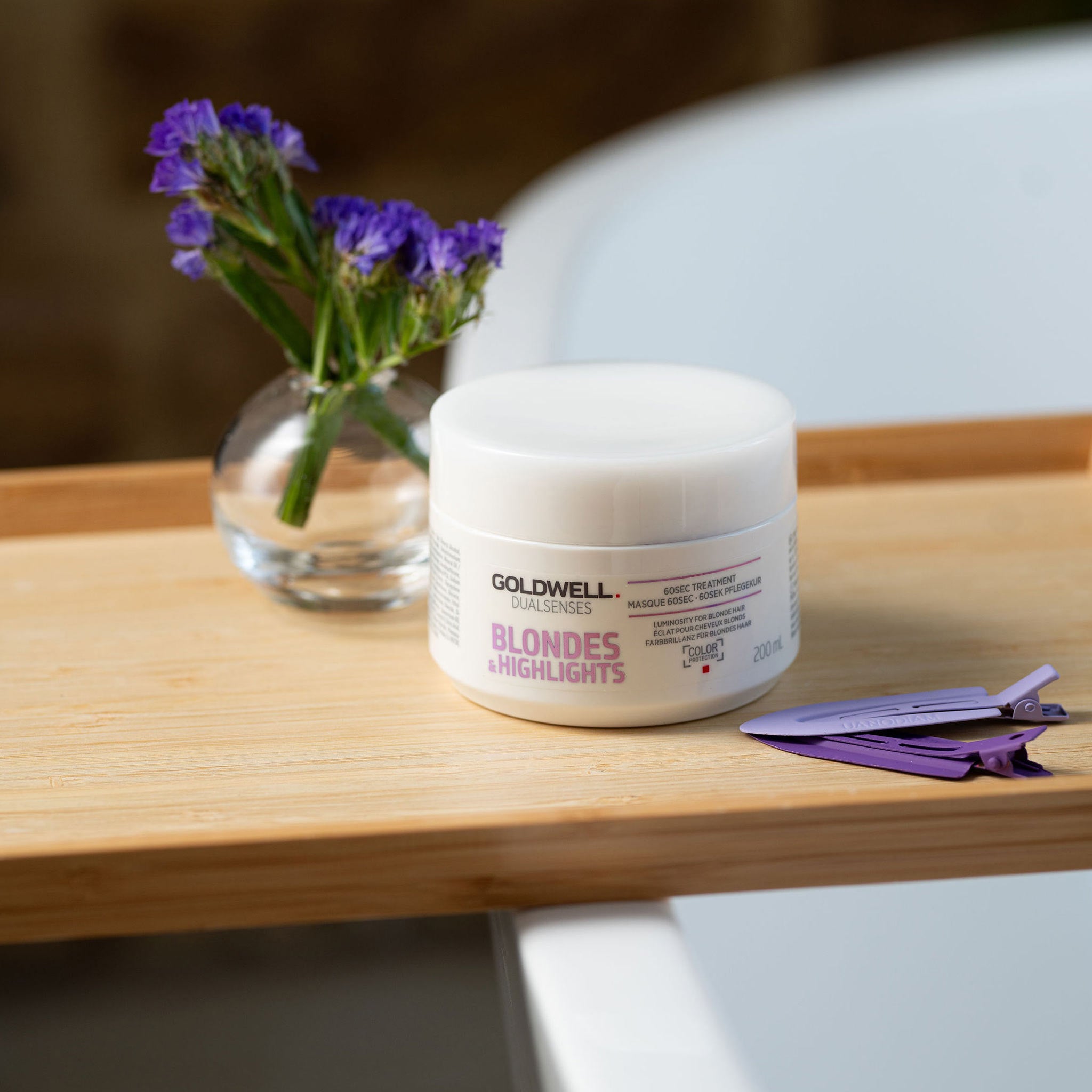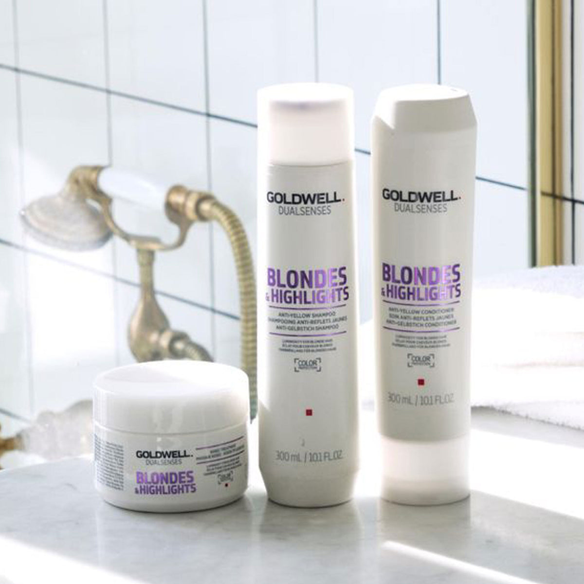 Goldwell Dualsenses Blondes & Highlights 60Sec Treatment 200ml is perfect for neutralising unwanted yellow tones for a luminous blonde colour.