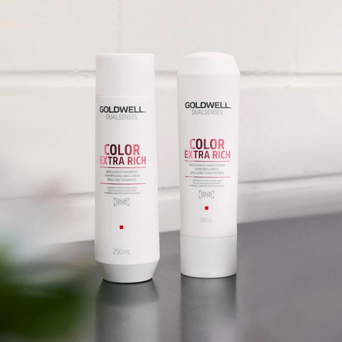 Goldwell Dualsenses Color Extra Rich Brilliance Conditioner 200ml is designed to detangle and instantly add a glamourous luminosity to the hair. Works with both coloured and non-coloured hair.
