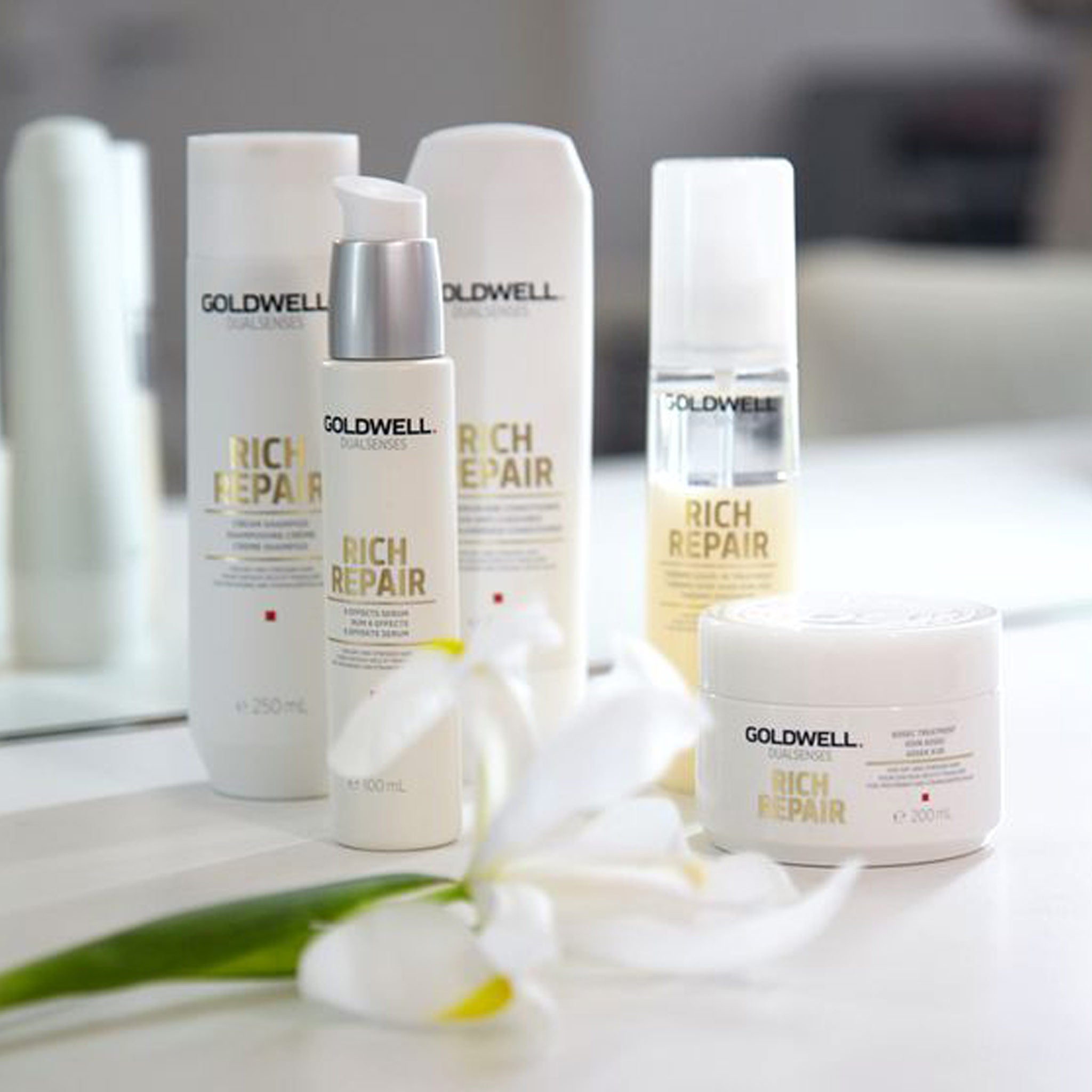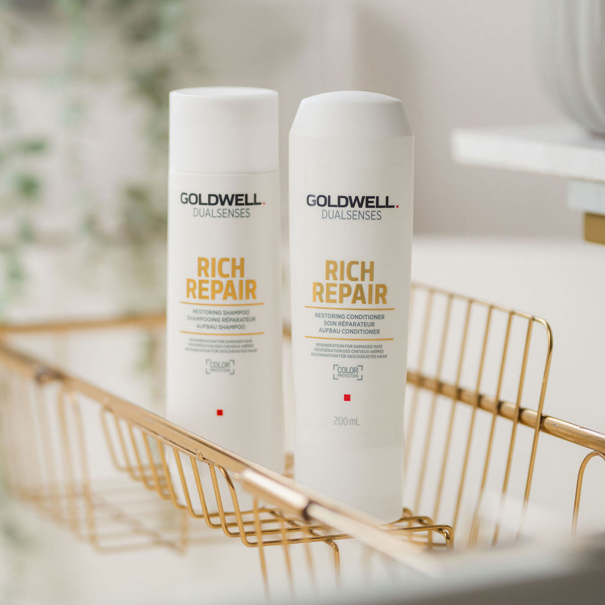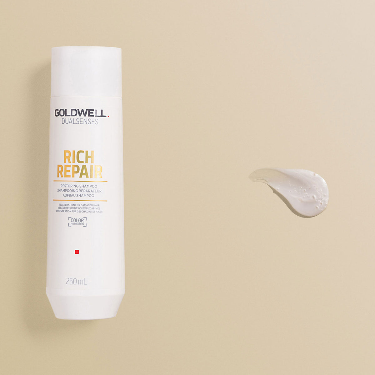 Goldwell Dualsenses Rich Repair Restoring Shampoo 250ml provides extra elasticity to the hair whilst giving hair it's natural shine back!