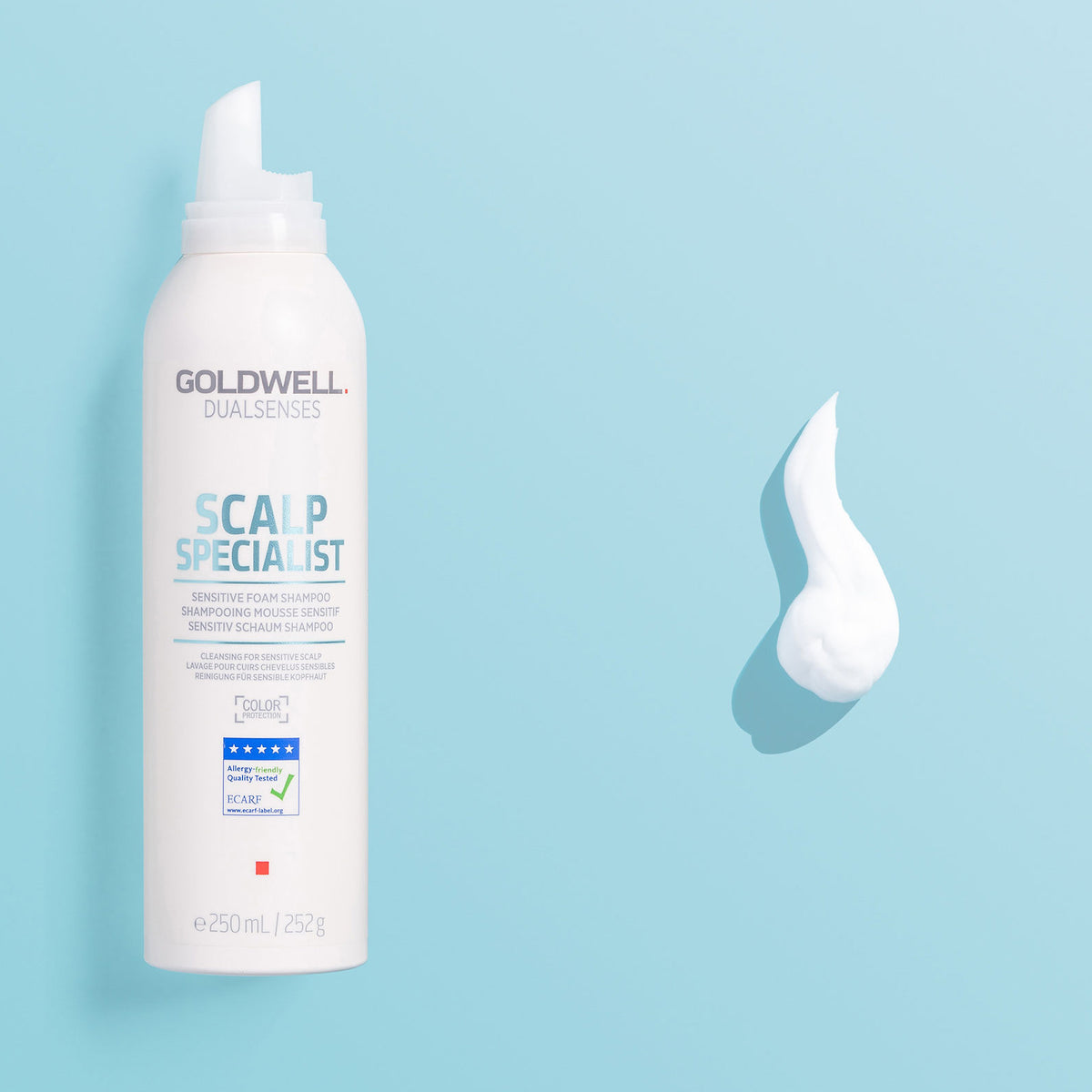 Goldwell Dualsenses Scalp Specialist Sensitive Foam Shampoo 250ml uses a Regulation System with Lime-Tree Blossom Extract combined with Instant Microfluid Technology.