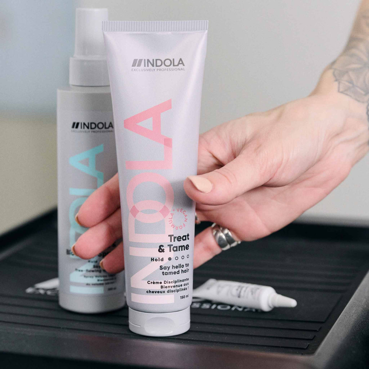 With the added benefit of humidity and heat protection up to 230°C, INDOLA Treat & Tame is a hair styling cream formulated with Glycerine to smooth frizzy hair, bringing it back under control. Vegan formula*.