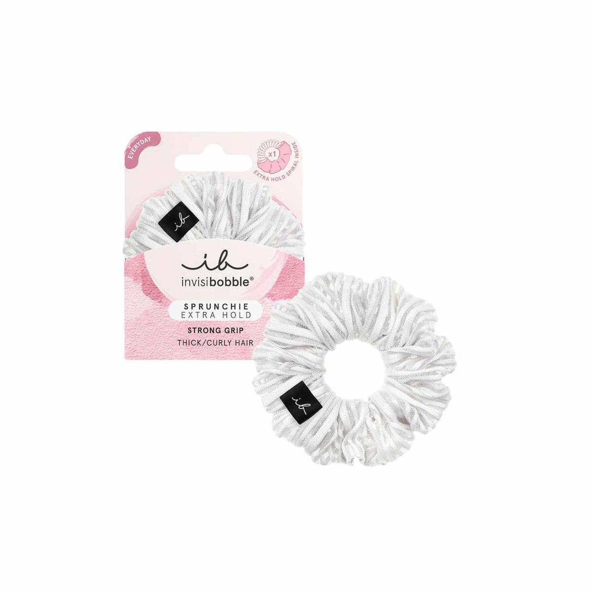 Invisibobble® SPRUNCHIE EXTRA HOLD, for thick/curly hair. With HAIRLOVETECH™, Having an EXTRA HOLD spiral inside, the SPRUNCHIE EXTRA HOLD ensures maximum hold while being gentle to the hair. Made especially for thick/curly hair and all styles.