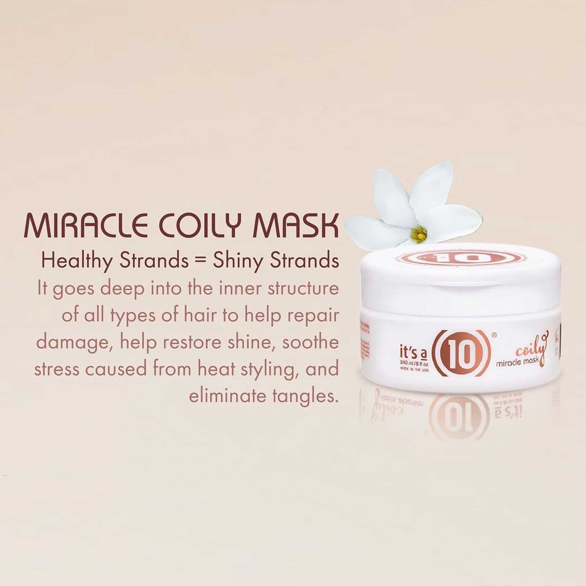 How to:Apply weekly or as needed after shampooing with Coily miracle hydrating Shampoo . Focus on midshaft to ends, massage thoroughly. Leave in for 3 to 15 minutes. Apply additional heat for extra deep penetration.