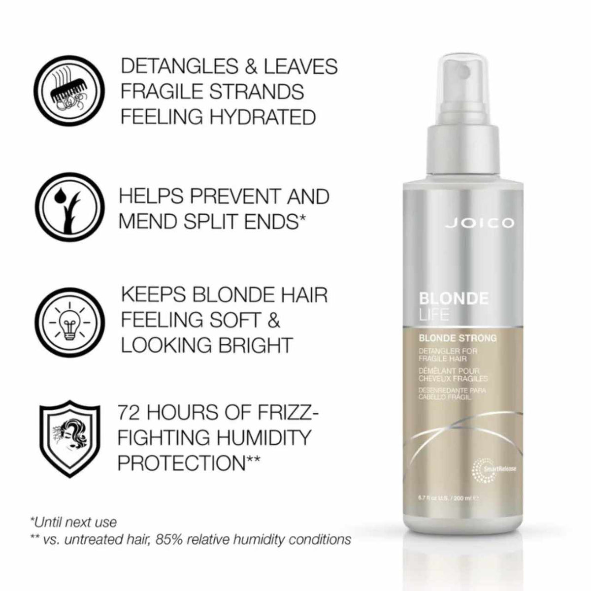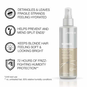 Feeling fragile? Be blonde and fearless with NEW Blonde Strong Detangler, ultra-lightened hair’s new daily protector! This multitasking protector helps detangle those fragile strands while keeping them resilient and shielded from UV rays and heat-styling tools.