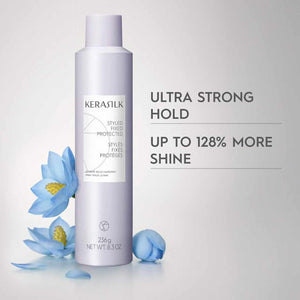 An ultra-strong hold hairspray infused with Biomimetic Silk and Blue Lotus Extract. Our 100% vegan formula ensures excellent style longevity and gives hair up to 128% more shine.