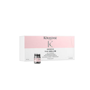 Kérastase Genesis Cure Anti-Chute is an intensive leave-in anti-hair loss treatment designed to strengthen hair at the root and reduce hair fall caused by breakage. This targeted ampoule treatment helps restore scalp health while reinforcing weakened fibres for hair that looks visibly denser, stronger, and more resilient.