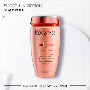Apply Kérastase Discipline Bain Fluidealiste Shampoo to wet hair, massage gently into the scalp and through the lengths of your hair. Rinse thoroughly and repeat if necessary. Follow with your favorite Kérastase conditioner for optimal results.