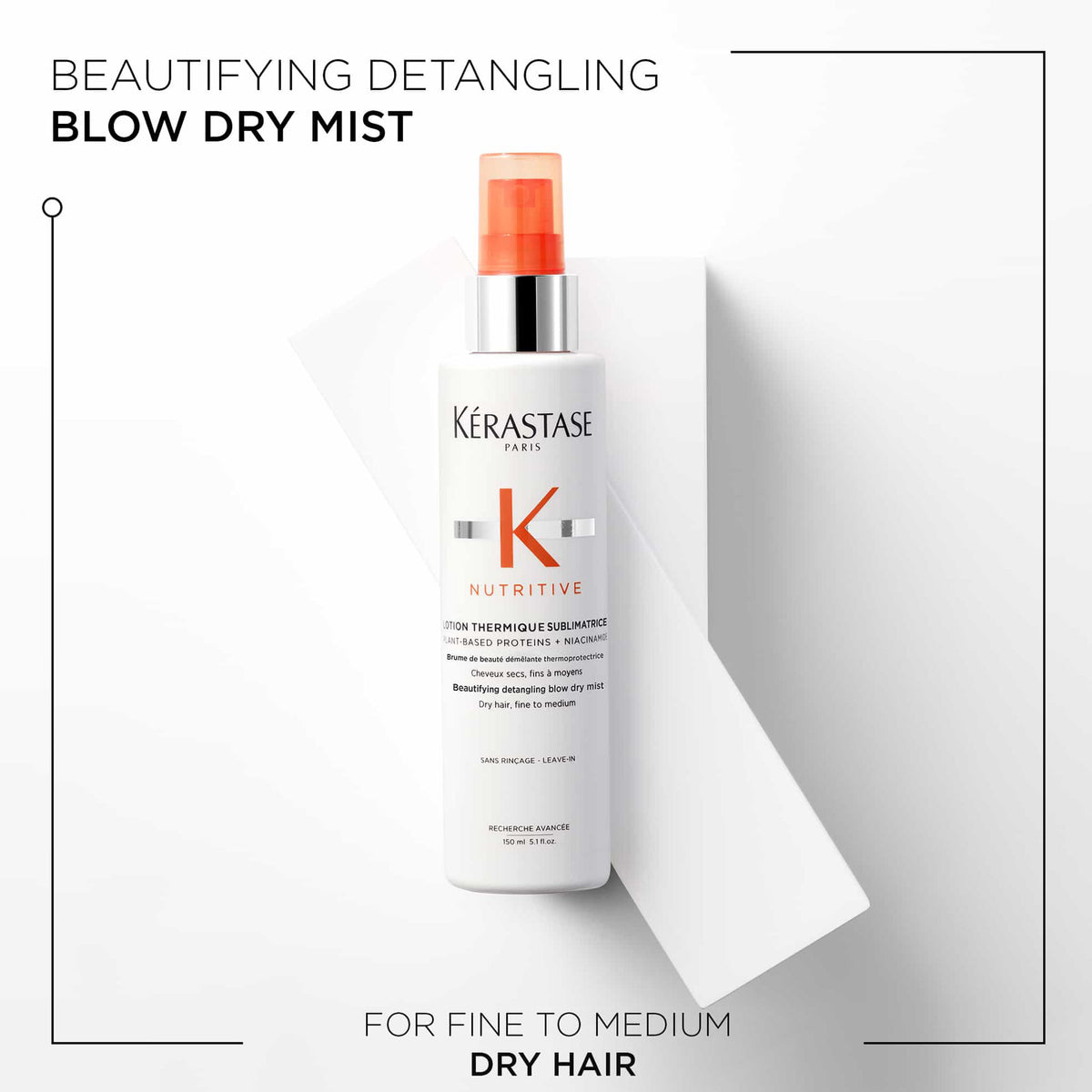 Experience the ultimate in hair nourishment and protection with Kérastase Nutritive Lotion Thermique Sublimatrice. This beautifying detangling blow-dry mist is specifically designed for dry, fine to medium hair, delivering unparalleled hydration and manageability.