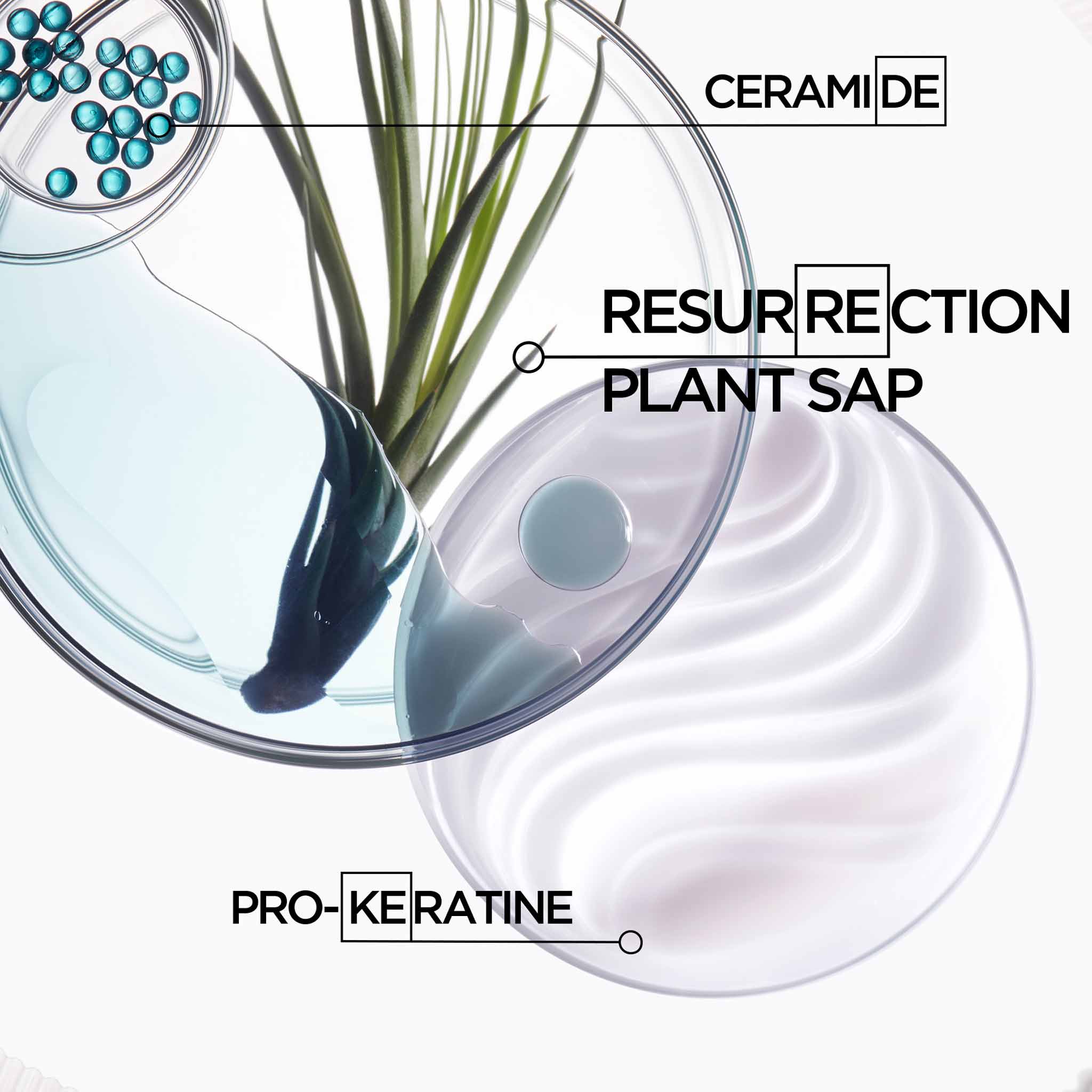 Formulated with Kérastase’s exclusive Vita-Ciment® and Sève de Résurrection, this powerful hair resistance masque works to reconstruct and revitalise the inner structure of weakened hair fibres. These advanced ingredients mimic the natural cement of the hair, filling in gaps and restoring internal strength.