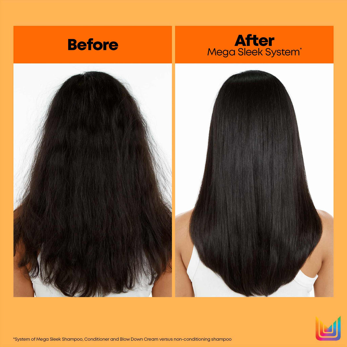 Mega Sleek Blow Down Leave-in Cream 150ml is a treatment and heat protectant for frizzy hair that is formulated with Shea Butter to provide easy glide for fast blowouts.