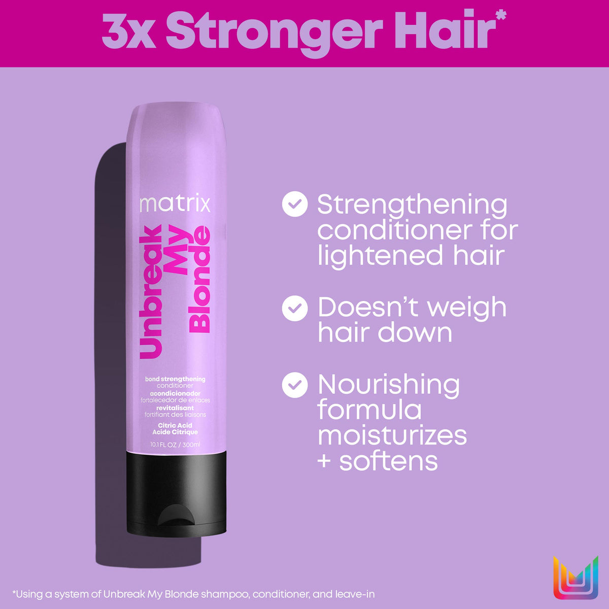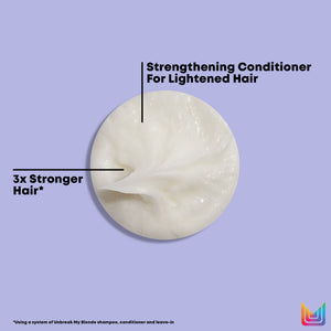 Unbreak My Blonde conditioner 300ml is a strengthening conditioner for blonde, highlighted & damaged hair that is infused with citric acid to strengthen and soften hair