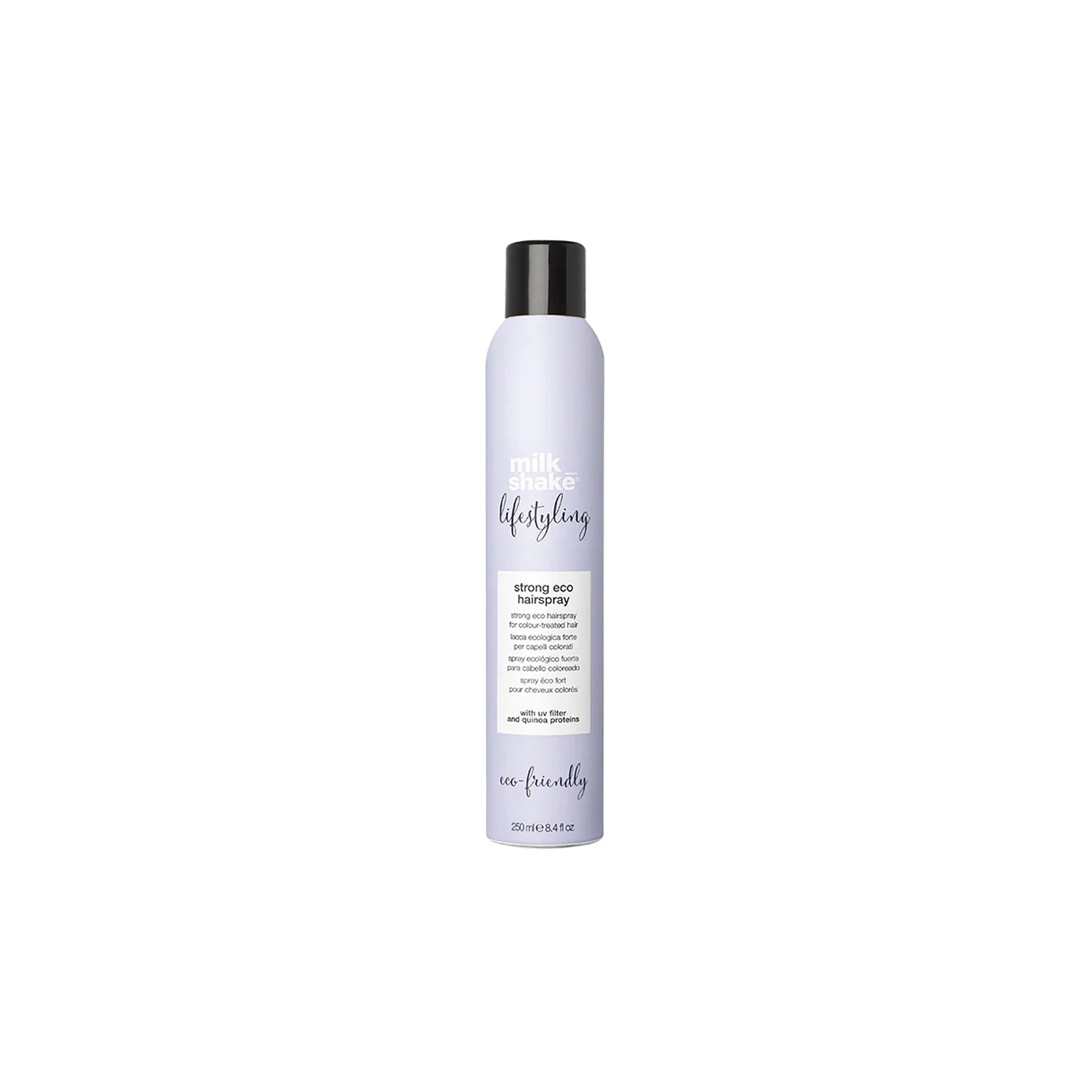 Milkshake Lifestyling Strong Eco Hairspray is an eco-friendly hairspray with extra strong hold that gives structure plus exceptional shine. Formulated specially for color-treated hair, it protects hair from humidity and external aggressors, maintaining the hair’s volume and style. Quick to dry, it is easily brushes out without leaving a residue.