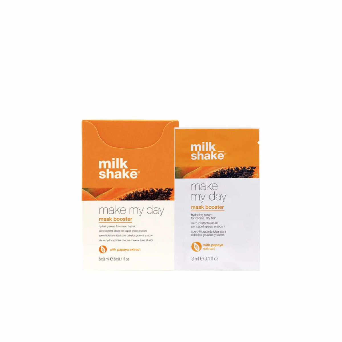 Hydrating serum with papaya perfect to hydrate and give shine to coarse, dry hair. The additional prickly pear active ingredient gives hair protection and nourishment. When mixed with the milk_shake® make my day mask booster, it strengthens their specific action on the hair.
