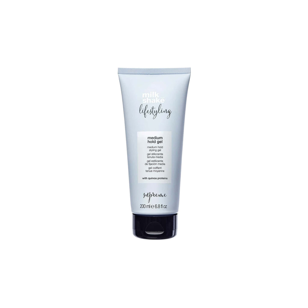 milk_shake® lifestyling medium hold gel, medium hold styling gel. Provides hold to create defined styles with incredible shine. Adds structure to fine hair and gives body and definition to curls while shining and smoothing frizzy hair. Quick to dry and doesn’t leave residue.