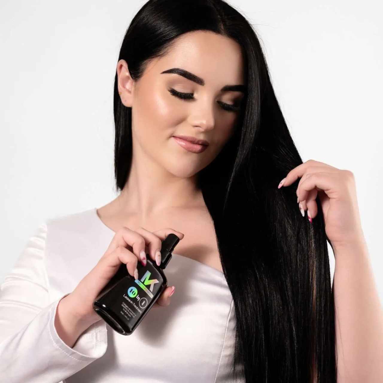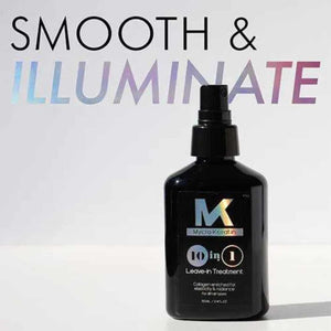 Show off healthy, soft, smooth, and bouncy hair, after a few spritzes of the peony fragranced 10-in-1 Leave-In Treatment. This leave-in-treatment detangles, moisturizes, reduces frizz, repairs split ends, smooths the hair cuticle and acts as a heat & UV protectant. It adds shine, hydrates, repairs damage, and tames flyaways. This treatment contains some of the active ingredients found in the Mycro Keratin Treatment for further repair.