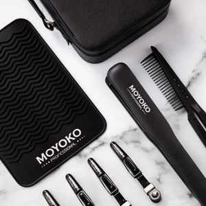 From its advanced ceramic plates to the premium haircare accessories, the Moyoko Pro Glider is the ultimate styling tool for achieving professional results at home. Whether you're using the included hair clips, styling comb, or travel bag, this set has everything you need for a flawless finish.