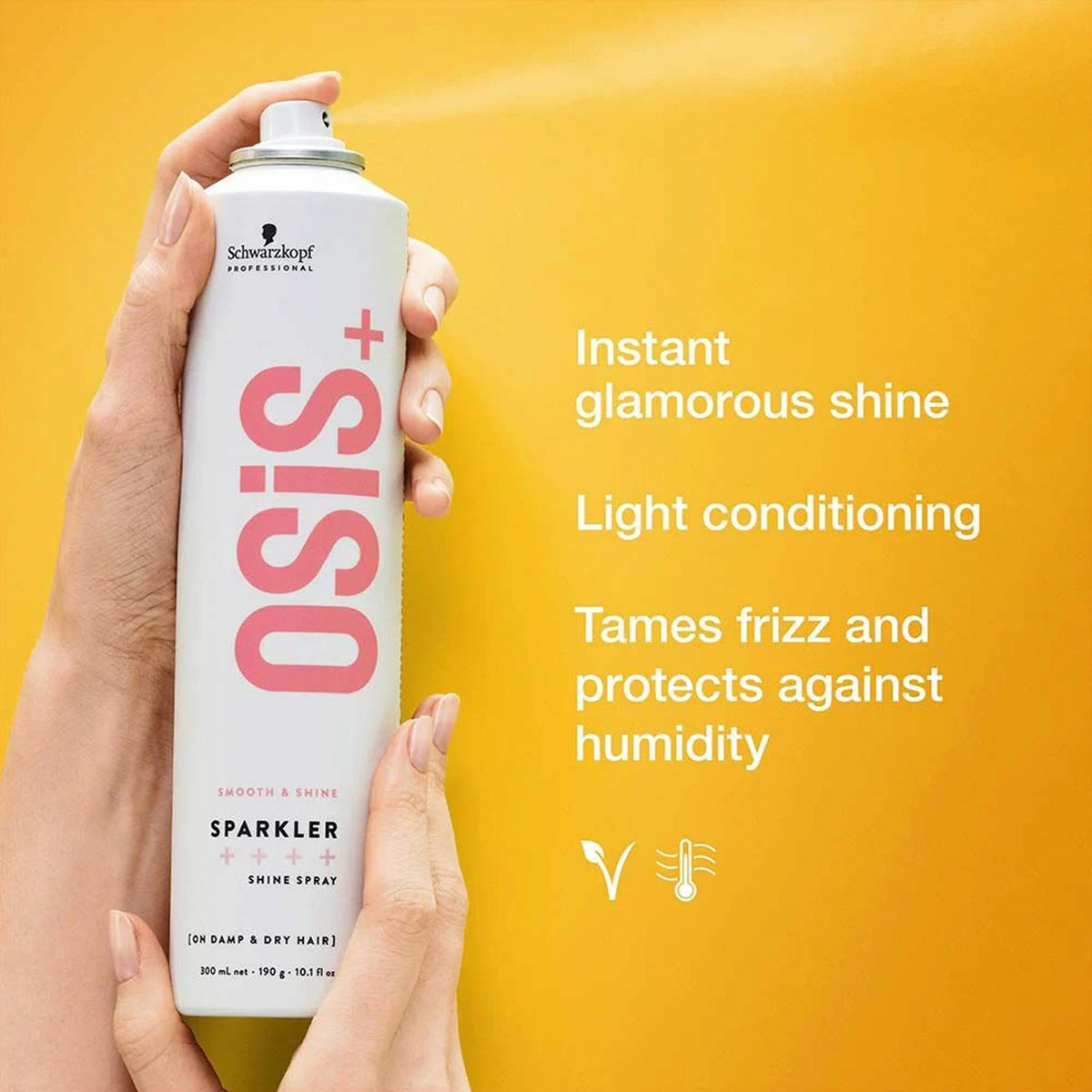 Providing light conditioning and glamourous shine, OSiS Sparkler is a silicone-free shine spray that reduces frizz and improves detangling, whilst protecting against humidity.