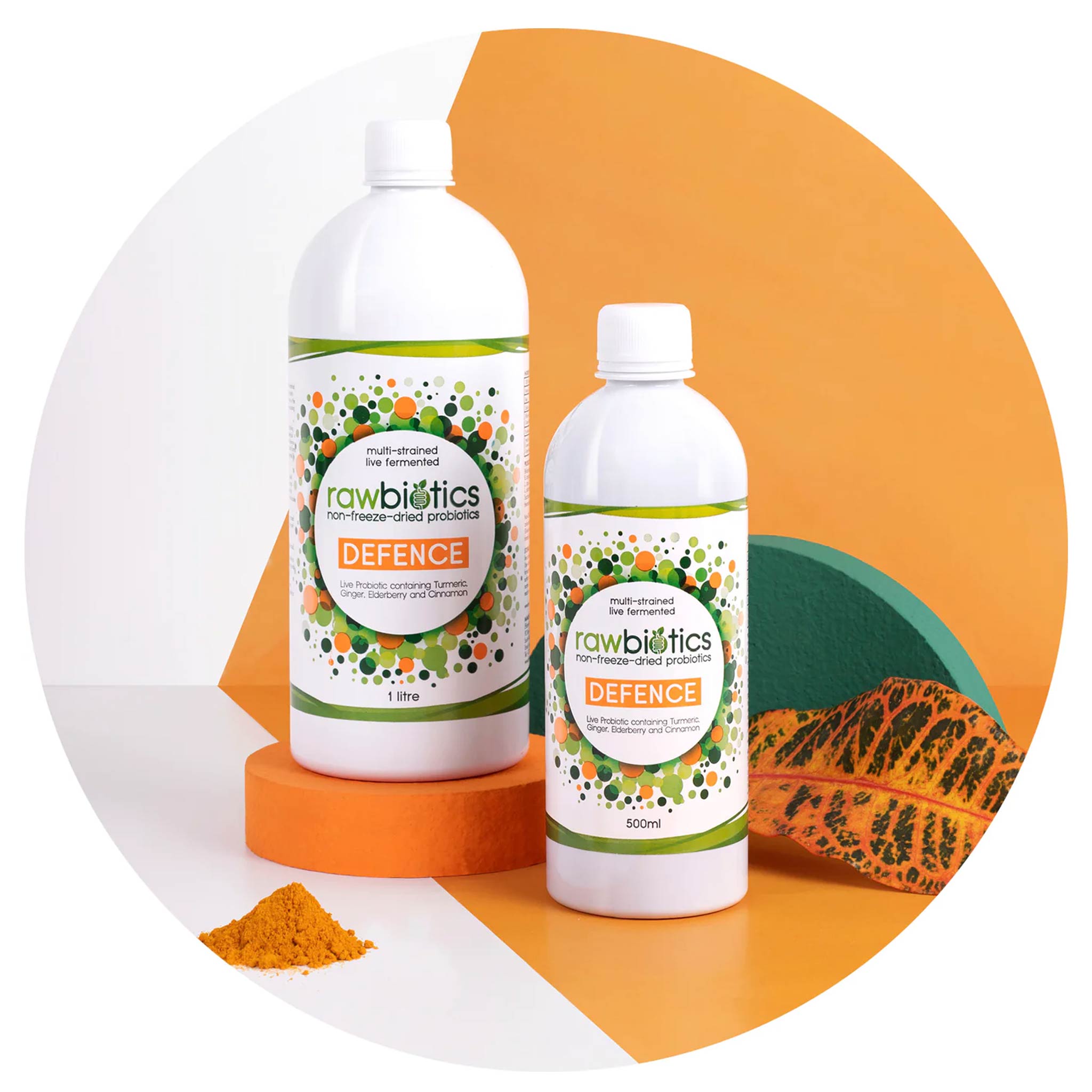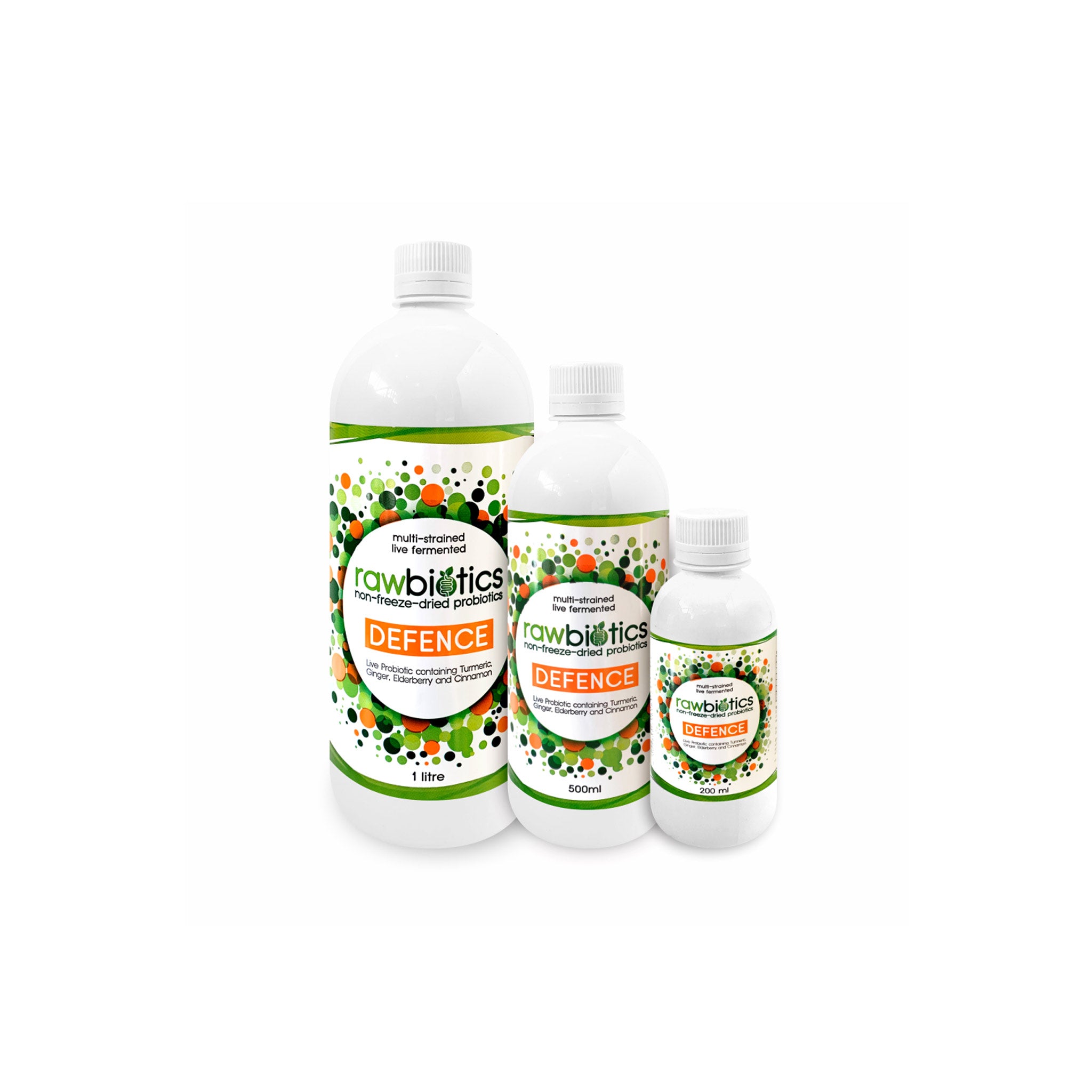 Rawbiotics DEFENCE is a live liquid probiotic which supports good gut and immune function. Containing a potent blend of ginger, turmeric, elderberry and cinnamon extracts along with the probiotic bacteria. Can be taken as your regular daily product if you have a weakened immune system, or to increase the body’s defences when they are most needed. Rawbiotics DEFENCE can also be taken as an addition to one’s regular Rawbiotics product for a short term boost.