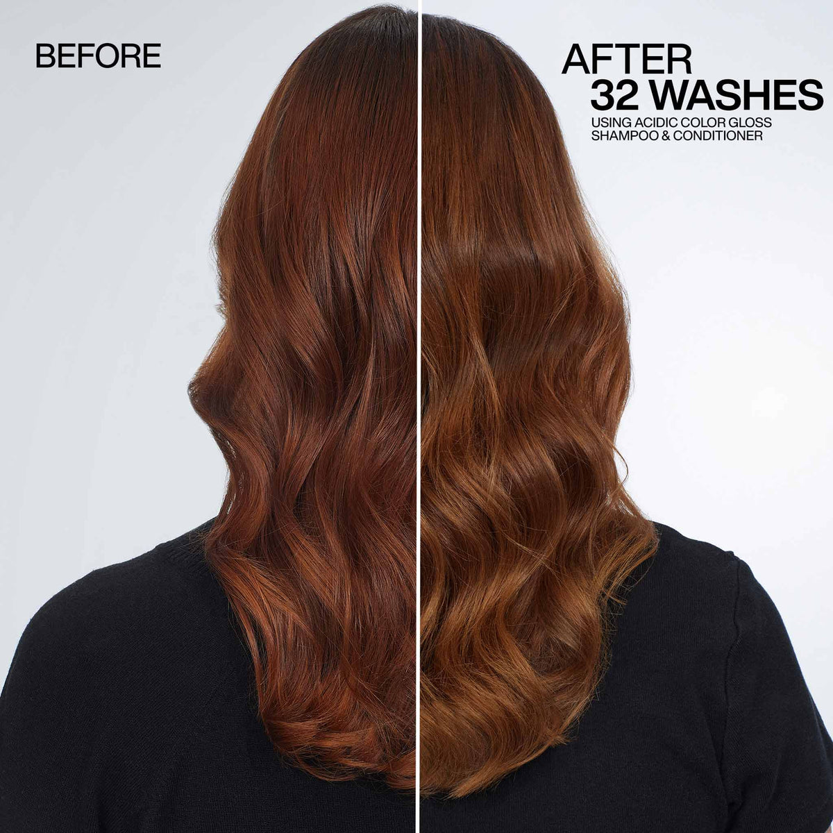 For best results, use Redken Acidic Colour Gloss Conditioner as part of the complete Acidic Colour Gloss routine. Pair it with Acidic Colour Gloss Shampoo, Activated Glass Gloss Treatment, and Heat Protection Leave-In Treatment for maximum shine and colour longevity.