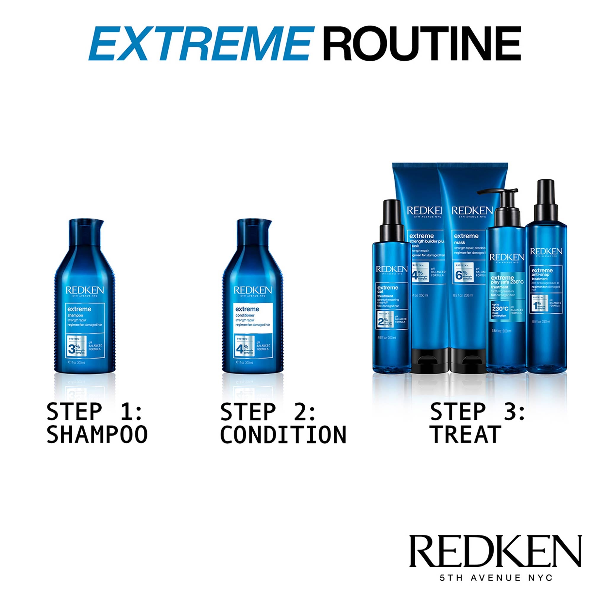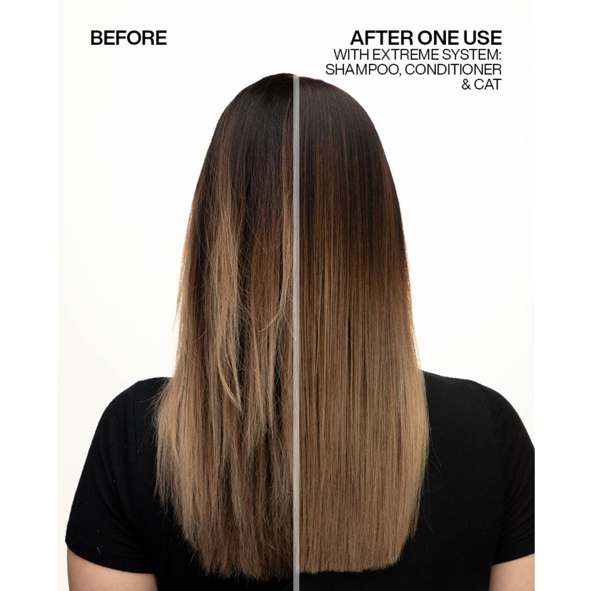 • Redken's Extreme CAT 250ml is a protein reconstructing rinse out treatment that adds immediate power to distressed and damaged hair while strengthening strands against hair breakage. Extreme CAT is formulated with Redken's Strength Complex and helps prep hair before chemical services to prevent future damage.