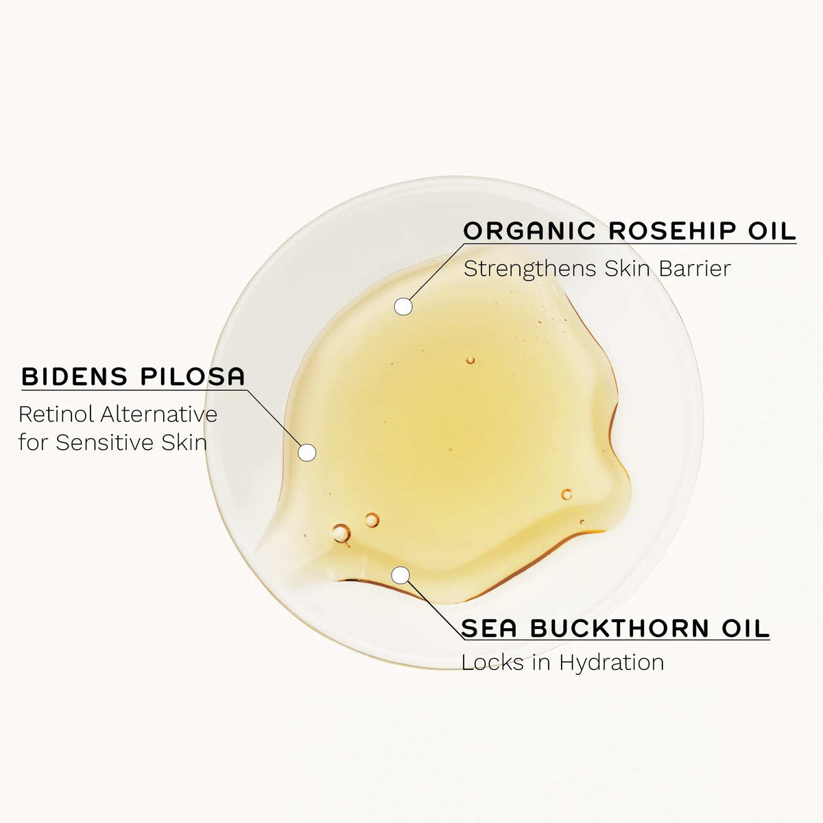 Formulated with our plant-derived, sensitive-skin alternative to Retinol, Bidens Pilosa, plus Organic Rosehip Oil & Sea Buckthorn Oil to help visibly firm and deeply nourish skin.