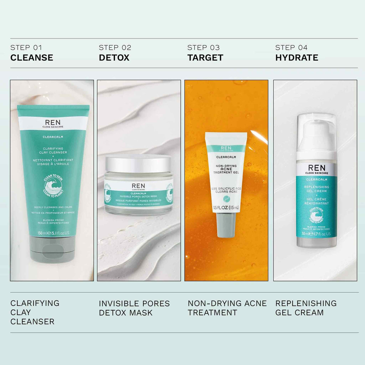 Cleanse skin thoroughly with Clarifying Clay Cleanser and gently pat dry. Next, apply Non-Drying Spot Treatment directly to blemishes or blemish-prone patches, or alternatively add a few drops into Replenishing Gel Cream and massage onto face and neck.