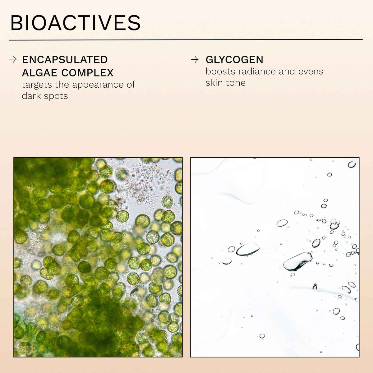 Intensely hydrating, yet non-sticky, the 94% naturally derived formula absorbs easily into skin, delivering an energising boost of moisture and targeting the route of hyperpigmentation, so that you awake to a dewy and glowing complexion that lasts all day. With a discolouration diminishing Encapsulated Algae Complex and moisture-locking Glycogen from corn.