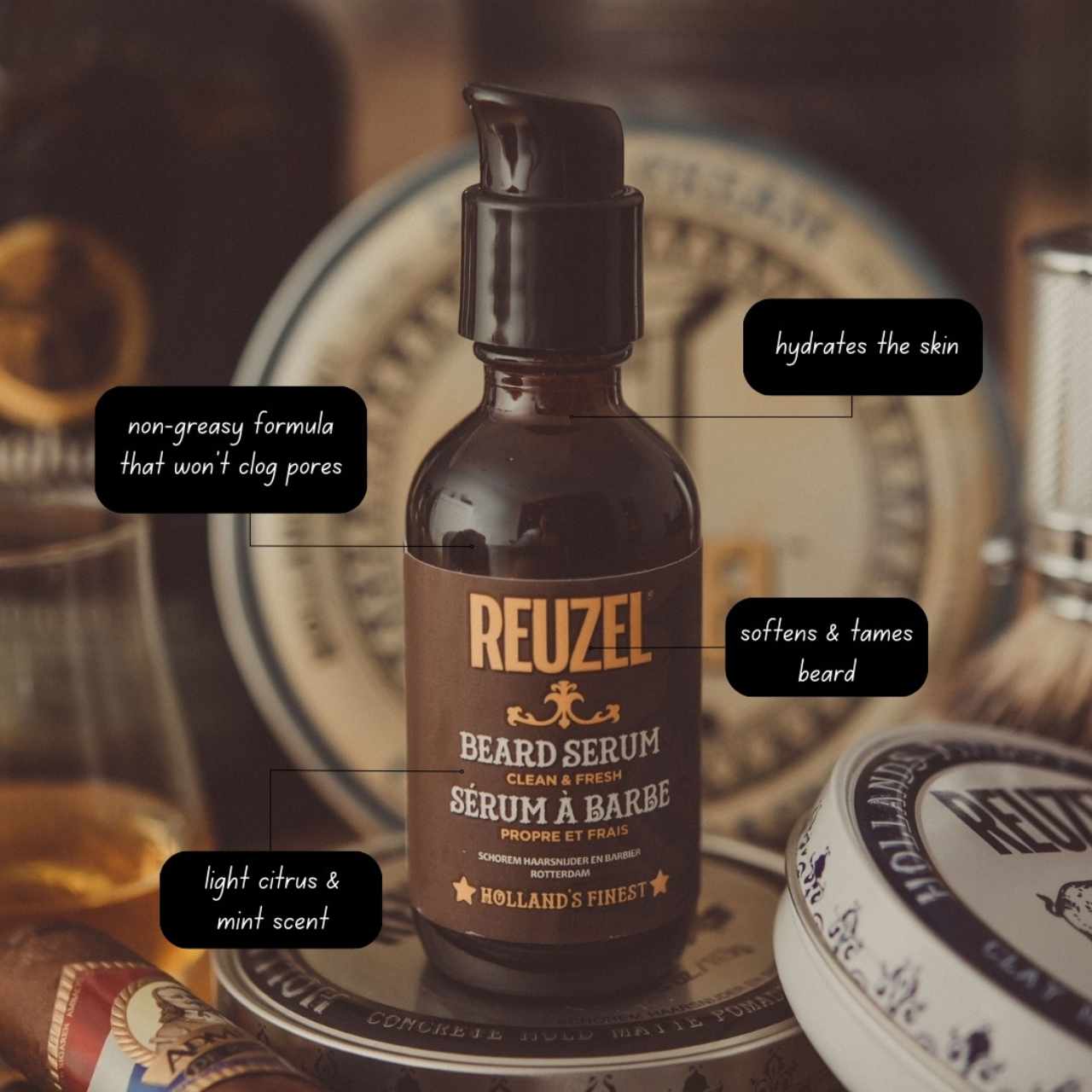 Apply 2-3 drops of this beard oil to soften and tame the beard, while hydrating the skin underneath.