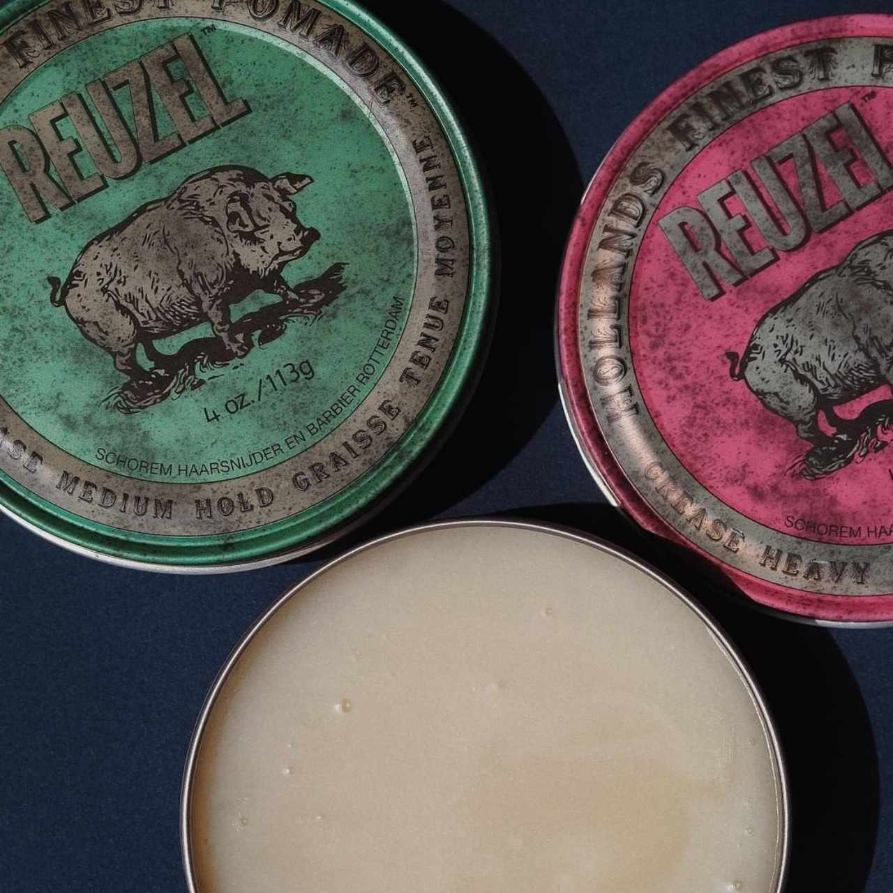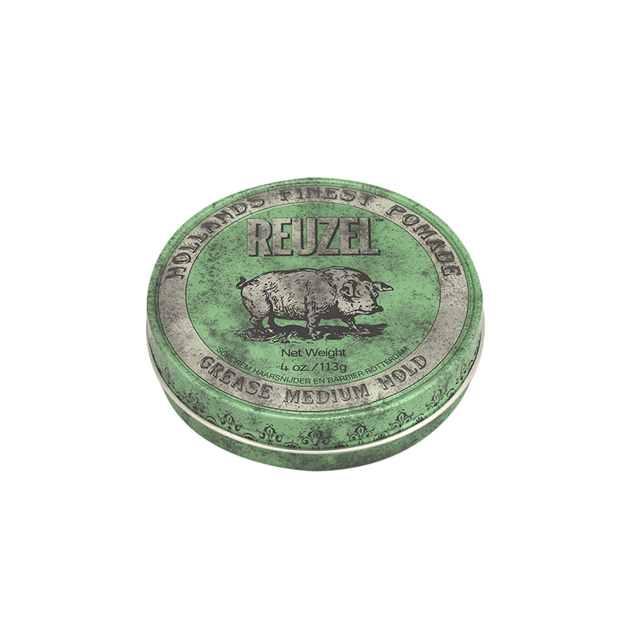Reuzel Green Pomade Grease, formulated with Beeswax, allows product to glide through the hair without clumping, while encouraging moisture retention.