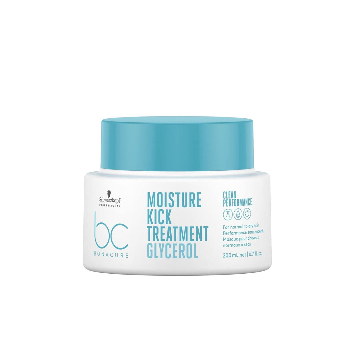 • Schwarzkopf BC Moisture Kick Glycerol Treatment Mask 200ml deeply moisturizes the hair and gives it a healthy look. It is suitable for normal to dry, coarse, and brittle hair and helps keep your waves and curls supple and with bounce. Due to the light emulsion base, the moisturizing agents penetrate the hair very quickly, intensively hydrating the inner structure. Then vegan keratin and Cell Equalizer Technology provide additional care, repairing each strand inside and out by filling structural gaps using hair identical agents. It is through this process that this mask restores elasticity, strength, and shine to the hair. Additionally, glycerol provides intense hydration to balance the natural moisture content of the hair. All in all, this mask will leave the hair softer and shinier, much easier to detangle and style.