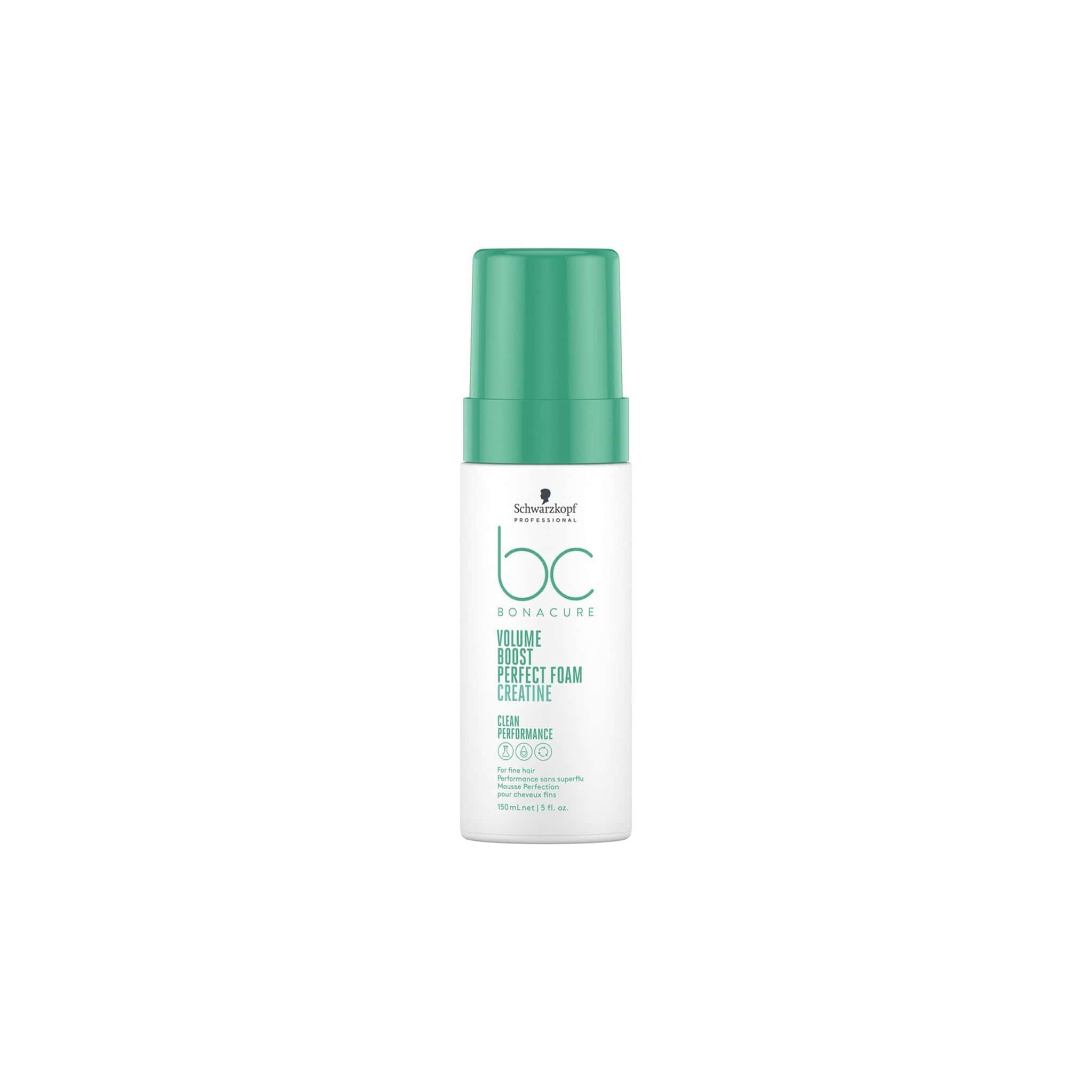 Schwarzkopf BC Volume Boost Creatine Perfect Foam 150ml is a styling mousse that provides thin and limp hair with weightless volume. The formula is airy and light, ideal to style thin and limp hair, adding volume without overburdening. Styling products are essential to enliven limp and thin hair. This weightless styling foam resorts to a unique combination of creatine and vegan keratin to provide the hair with volume and energy. At the same time, panthenol enriches the formula with essential moisture, improving manageability and preventing static while helping to protect the hair from blow-dry damage. After each use, the hair is refreshed with volume and a lasting body with a natural shine.