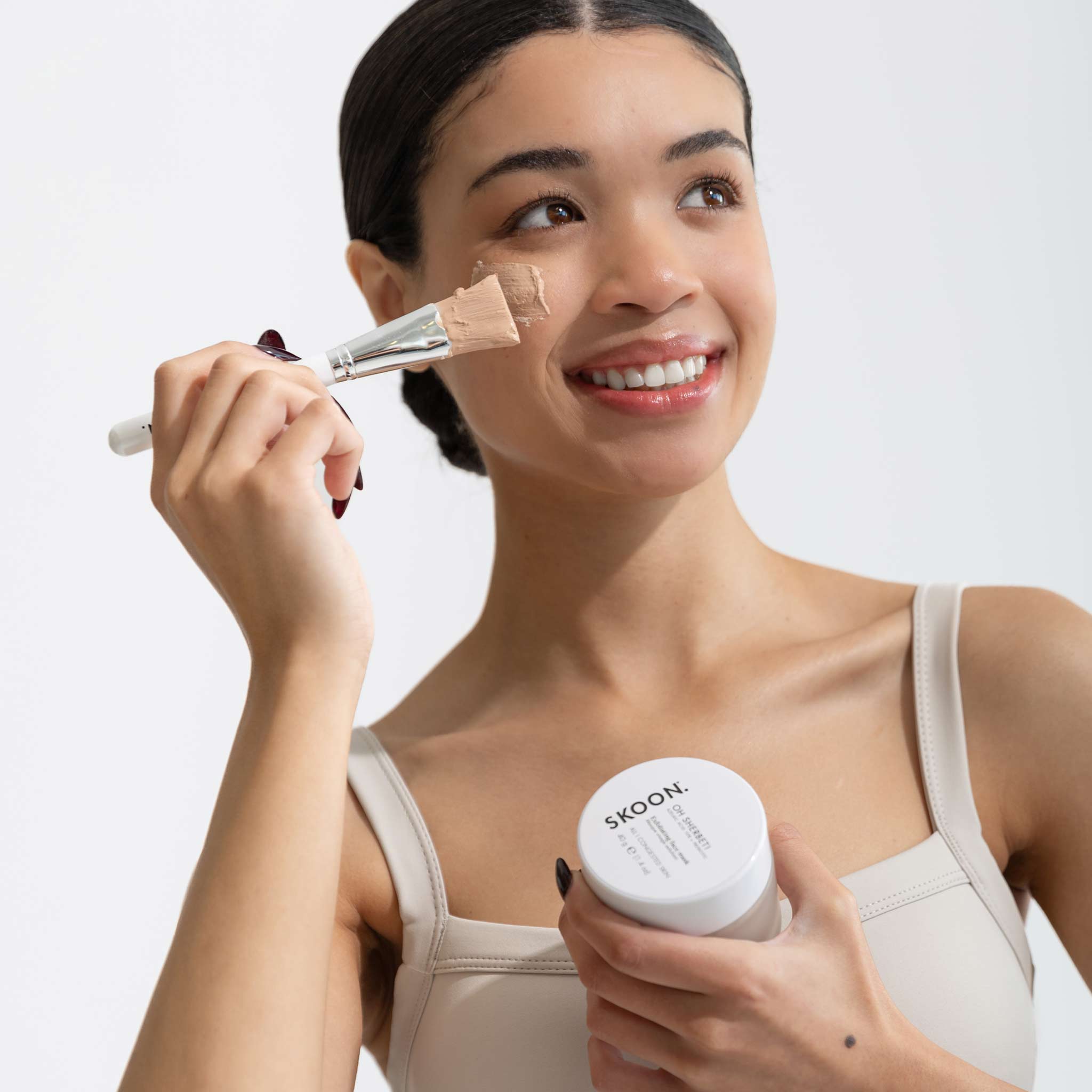 Its gentle formula makes it suitable for most skin types, while the SKOON. NO MESS Brush allows for easy, smooth application.