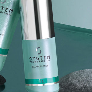 The System Professional Balance Lotion instantly soothes the scalp and relieves dryness and tension. The highly concentrated Dermacalm complex strengthens the skin‘s moisture barrier and rehydrates dry scalps. It rebalances the skin’s hydrolipid profile, to make sensitive scalps more resilient. Perfume free formula.